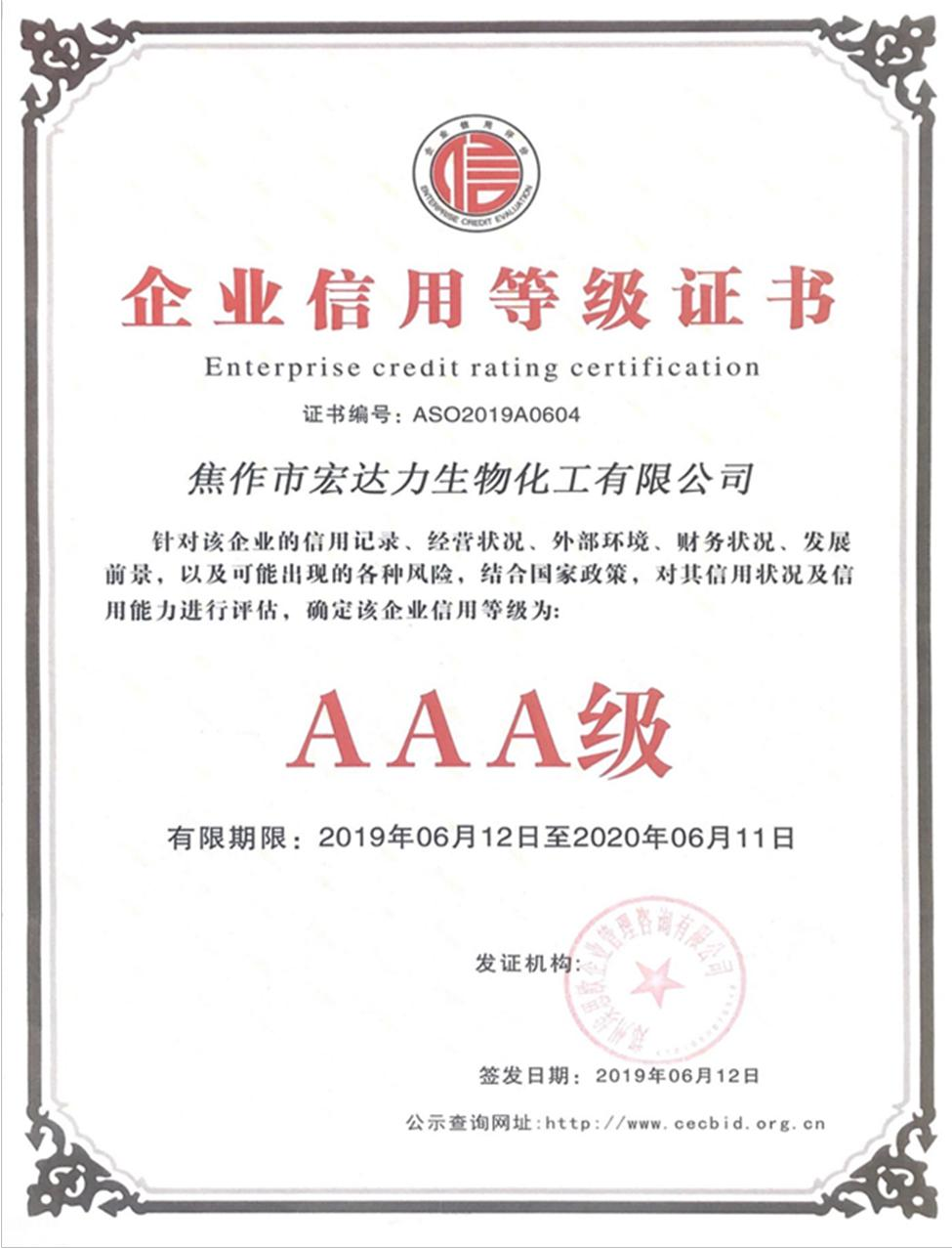 企業(yè)信用等級(jí)證書